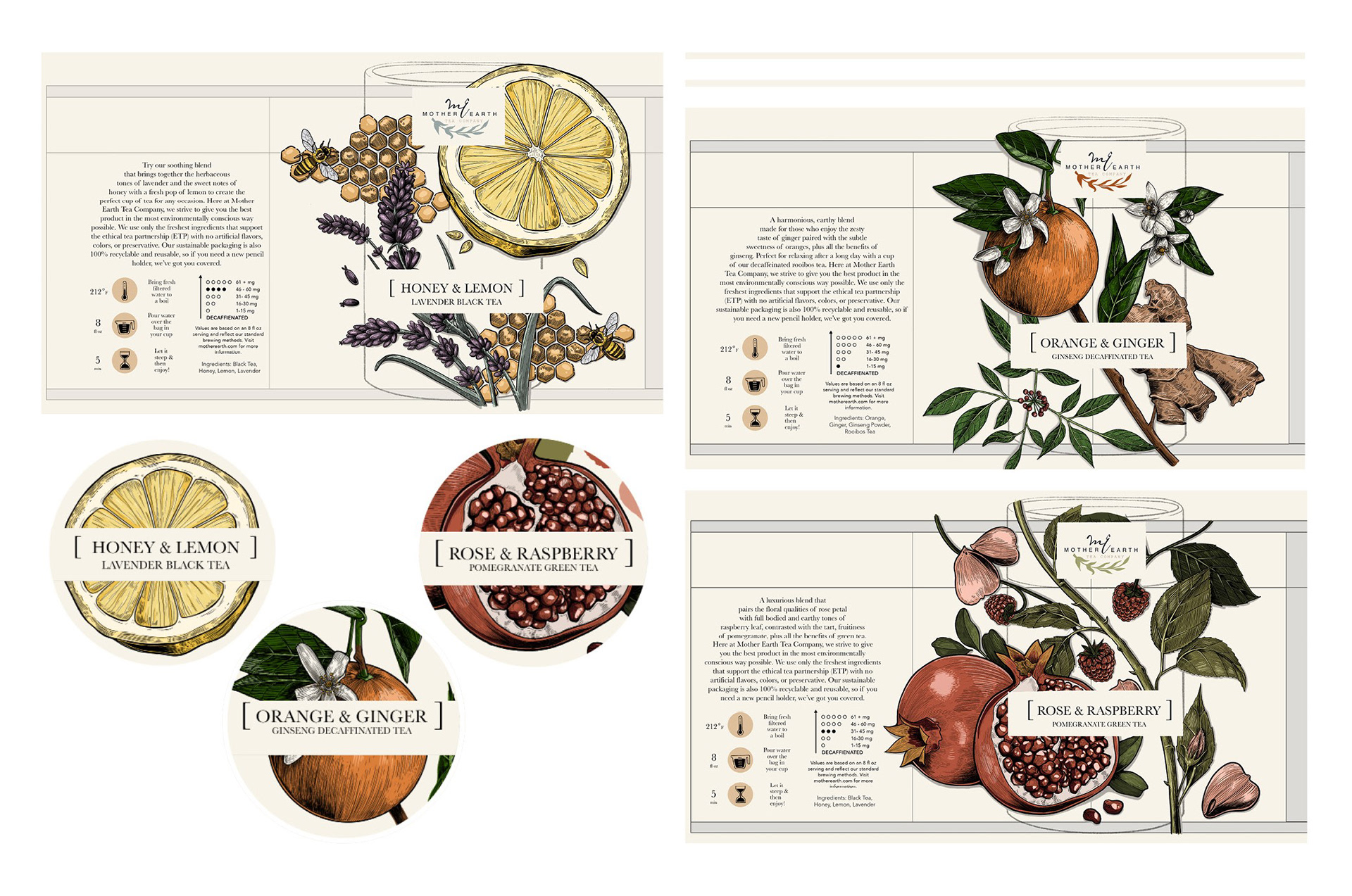 In the realm of imaginary brands, I envisioned and brought to life "Mother Earth Tea Company," a fictitious tea brand dedicated to the fusion of all-natural ingredients, sustainable packaging, and a commitment to environmental consciousness.